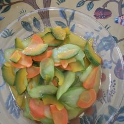 5.Then Pour in the pumpkin and cucumber slices and stir-fry them together