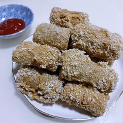 />3.If the edges of the tofu skin cannot stick to each other when wrapped, you can fix it with toothpicks, fry it in the pan for a while and then remove the tofu skin roll.