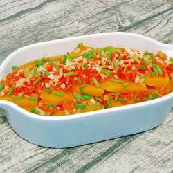 12.A delicious steamed pumpkin with chopped pepper is ready~~