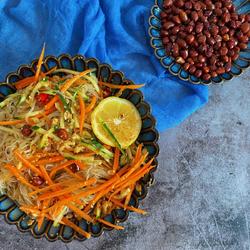 1. Cut carrots and cucumbers into shreds; soak vermicelli in cold water until soft and mince garlic;