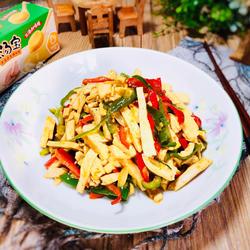 Stir-frying dried tofu in water can remove the beany smell, stir-fry green pepper with salt to bring out the fragrance, adding dried tofu can absorb the green pepper The aroma makes the dried tofu taste more delicious.