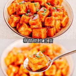 2.Cut the tofu into small pieces, coat with corn starch, heat oil in the pot and add Fry the tofu until both sides are golden brown and set aside.Add the freshly prepared sauce to the pot and bring to a boil.Pour in the freshly fried tofu and stir-fry evenly