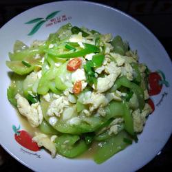 8. Stir-fry the loofah until soft, add the eggs and stir-fry together