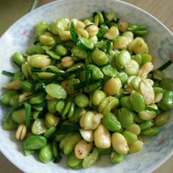 3. Stir-fry until the color changes, add appropriate amount of water, and cook the broad bean yellow.