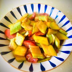 6. Stir-fry the zucchini until raw, add a little salt, sugar and MSG.
