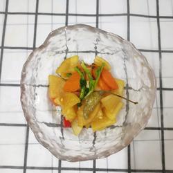 3.The ingredients are cut, and the green on the plate is radish leaves.