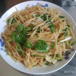 11.Put the fried potato shreds into the plate.The spicy and sour potato shreds are appetizing.It's ready.