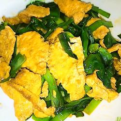 6. Pour in the eggs and leeks and stir-fry together, then add the seasonings and it’s done!