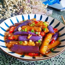6.In the pot Add a little more oil, heat the oil and fry the eggplants over medium-low heat.Take the eggplants out when they are cooked