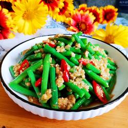 13. Pour the minced garlic into the beans and stir evenly.Can