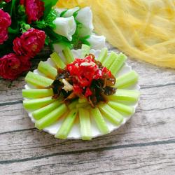 7.Bell pepper, garlic , chop into pieces, put in a bowl, add salt, light soy sauce, mature vinegar, sesame oil, add a little water, stir evenly