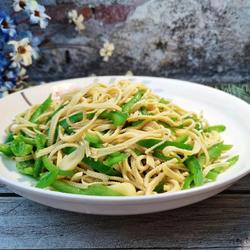 1.Ingredients are ready: Qianzhang, green pepper, garlic