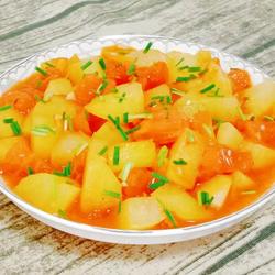 5. Heat oil in a pan, pour in potatoes and fry slowly over low heat6.Cook until the potatoes are soft and can be pierced with chopsticks
