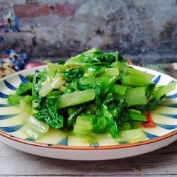 7.After the ingredients are stir-fried, add the lettuce to the pan and stir-fry