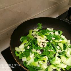 4.Add garlic, stir-fry, add appropriate amount of water, and cook for about half a minute , finally add an appropriate amount of salt and a little light soy sauce.