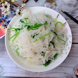 8.After minced garlic is stir-fried, add shredded radish and stir-fry