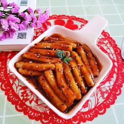 9. Fry until all the rice cakes are covered with brown sugar and the soup is thick.Add black and white sesame seeds and stir-fry evenly.Take out the pot