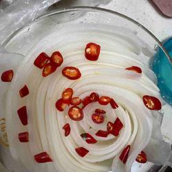 1. Wash, peel and cut the radish into thin slices.You can use a spatula here.Cut the millet pepper into rings and arrange them.