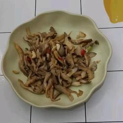 5. Heat the oil and pour in the garlic , spicy millet, fried onion to bring out the fragrance.Pour in the cumin powder, then the oyster mushrooms and stir-fry evenly, add salt and light soy sauce, stir-fry and serve.