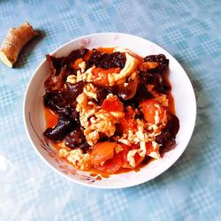11.When the tomatoes are almost pureed, add the fungus and stir-fry evenly