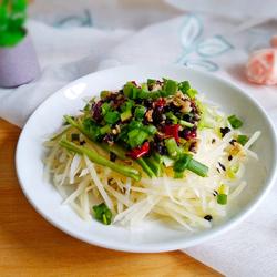 • Black bean paste mixed with green pepper Illustration of how to make potato shreds 8
