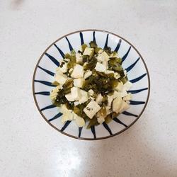1. Cut the pickled vegetables into thin strips and cut the tofu into cubes