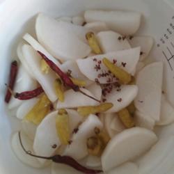 Pickled white radish, sour, spicy and refreshing.
