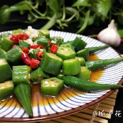 7.Put oil into the pot, heat it up and add pepper until the pepper changes color (remove the pepper ), pour it onto the okra plate while it's still hot.