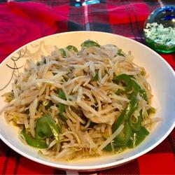 4.Add bean sprouts and stir-fry over high heat for one minute