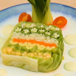 4. Cabbage is used as the shell, spread a layer of vegetables and pour the juice once, let it cool before spreading new layer.