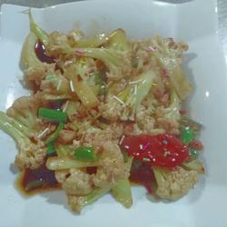 3. Fry the cauliflower in hot water , remember not to burn it until it is colored.