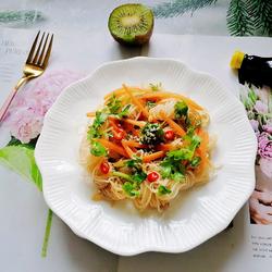 7. Put konjac shreds, coriander and carrots into a plate and pour Add the sauce and stir evenly