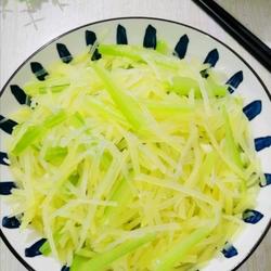 Blank the celery and remove it immediately if it changes color.Cool, blanch the shredded potatoes until they are done, take them out and let them cool immediately.If you like chili, you can add a small spoonful of chili oil.