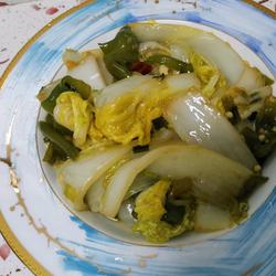 4. When the baby cabbage is half cooked, add light soy sauce, oil and stir-fry evenly.