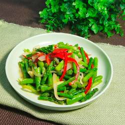 9. Fry until cooked and add a small spoonful of salt and a small spoonful of mushroom essence.This is a refreshing and refreshing stir-fried asparagus suitable for summer.