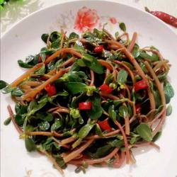 Blank the purslane for two minutes and let it cool immediately.If you like spicy food, you can add a small spoonful of chili oil.