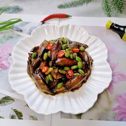 5. Stir fry for a while and then put it aside Add edamame and stir-fry together and add two spoons of light soy sauce to enhance the freshness