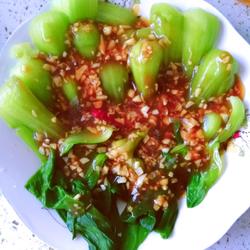 4. Pour the sauce in the pot evenly on the rapeseed, and the delicious oil-consuming rapeseed is ready La! Rapeseed can also be replaced by lettuce, lettuce, baby cabbage, etc.