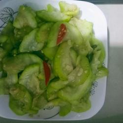 6.Stir-fry until the melon slices are watery and uncooked (you can also add a small amount of water or boil the soup), then turn off the heat, remove from the pot and serve on a plate