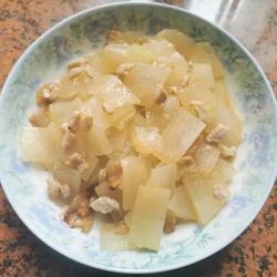 2. Peel and slice the winter melon, cut into fat and thin pieces of pork.Shred the lean meat and wrap it in cornstarch.