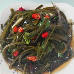 4.Heat oil in a pot, add dried red pepper, and pour it into the kelp
