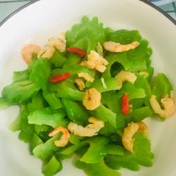 6.Put the bitter melon and sea rice into a basin, add a little salt and MSG.