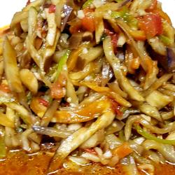 A little less oil.You can use less oil when frying raw eggplants.Add a little water to prevent the pot from sticking when the heat is too high