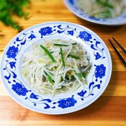 Rinse the mung bean sprouts, soak them in water for five minutes and fry them until they are tender.The whole process is complicated.Stir-fry in high heat.Mung bean sprouts and chives are relatively fresh.Just add a small spoonful of salt and a small spoonful of sugar and stir-fry.