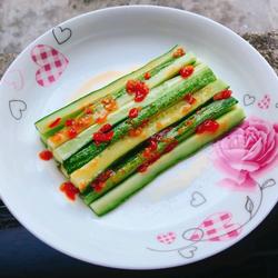 Cucumber ( 1 ) | Garlic chili sauce ( Adequate amount span> ) |