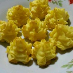 12. Put the squeezed mashed potato pagoda into the preheated oven, heat up and down to 200 degrees, for about 15 minutes, or check the coloring on the surface at any time during baking