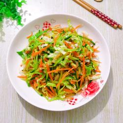 Cut cucumbers, cabbage, and carrots into thin strips, do not cut too much It's thick and tastes bad.If you like chili, you can add a small spoonful of chili oil.