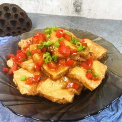 7. Take it out of the pot and put it on a plate, sprinkle with chopped green onion, and the hot pot tofu with full color, flavor and flavor is ready