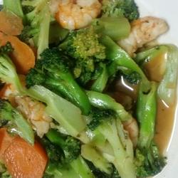 2.Cut broccoli, chop garlic, shred shrimp, devein and cut in half, cut carrots into diagonal pieces
