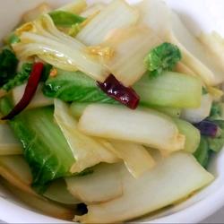 4. Heat the pot and add an appropriate amount of lard.After it is burned, add garlic, ginger, and chili pepper, then add the cabbage, stir-fry over high heat, and add it after three minutes.Salt, sugar, light soy sauce, and pepper oil, stir-fry over high heat for 4 minutes, then transfer to a plate.